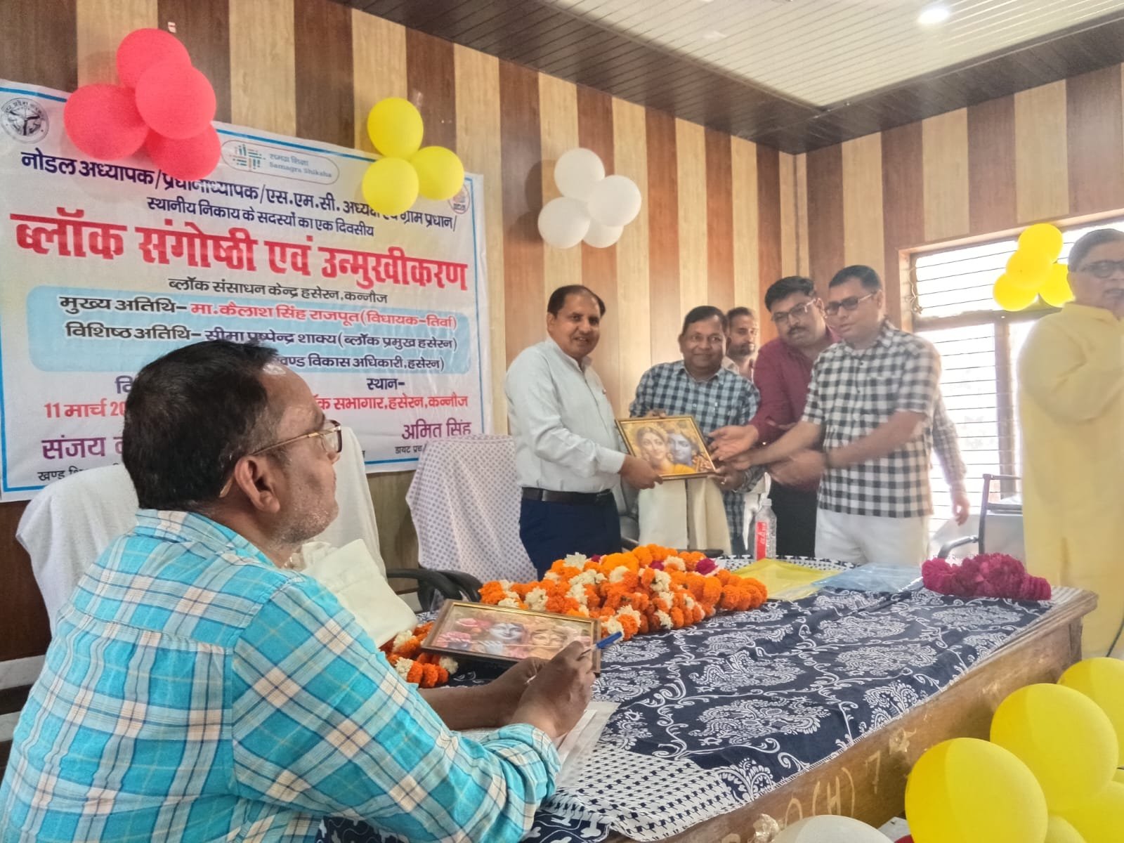 कन्नौज: विकास खण्ड हसेरन के ब्लॉक सभागार में ब्लॉक संगोष्ठी एवं उन्मुखीकरण कार्यशाला का आयोजन किया गया। कार्यक्रम में मुख्य अतिथि तिर्वा विधायक कैलाश राजपूत तथा विशिष्ट अतिथि ब्लॉक प्रतिनिधि पुष्पेंद्र शाक्य रहे। कार्यक्रम की शुरुआत अतिथियों ने मां सरस्वती की प्रतिमा के समक्ष दीप प्रज्वलित एवं माल्यार्पण कर की।