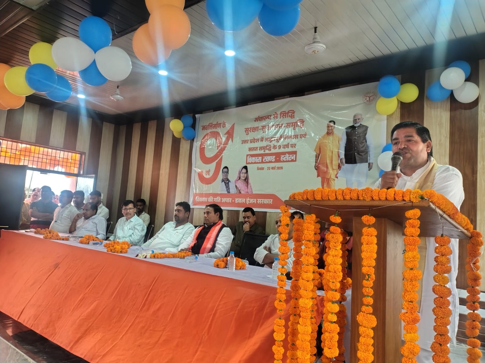 कार्यक्रम में भाजपा के पूर्व जिला अध्यक्ष नरेंद्र राजपूत ने कहा कि मुख्यमंत्री योगी आदित्यनाथ के नेतृत्व में सरकार ने जनकल्याणकारी योजनाओं को अंतिम व्यक्ति तक पहुंचाने का काम किया है। उन्होंने सामूहिक विवाह योजना, कन्या धन योजना सहित अन्य योजनाओं का जिक्र करते हुए सरकार की उपलब्धियां गिनाईं।